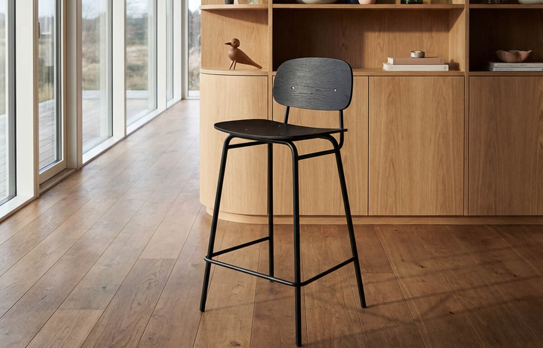 Next, think about style and materials. If you have a kitchen with natural materials, wooden bar stools can create a harmonious look. If you prefer a darker and more distinctive expression, a dark oak version can add contrast and depth.