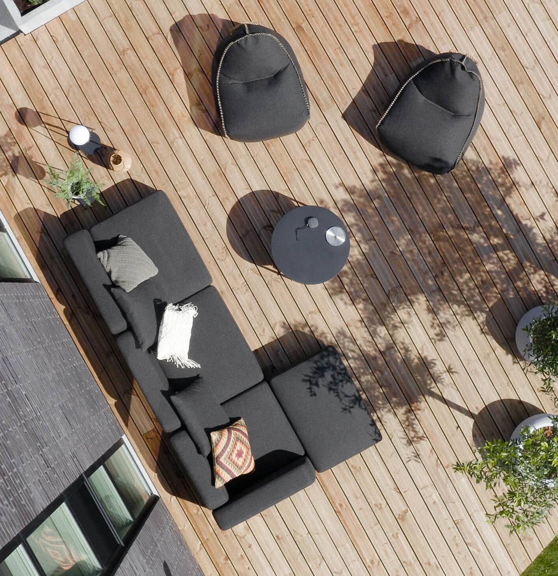 Sofas and modular lounge furniture with high backs can effectively break the wind and create a more protected zone. This is particularly relevant on open terraces, where the wind often comes from the same direction.