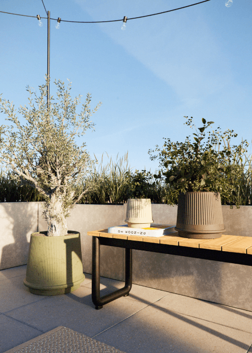 Large planters with tall plants are ideal for gardens, terraces, and balconies alike. They can be moved as needed and allow you to adjust the level of screening over time.