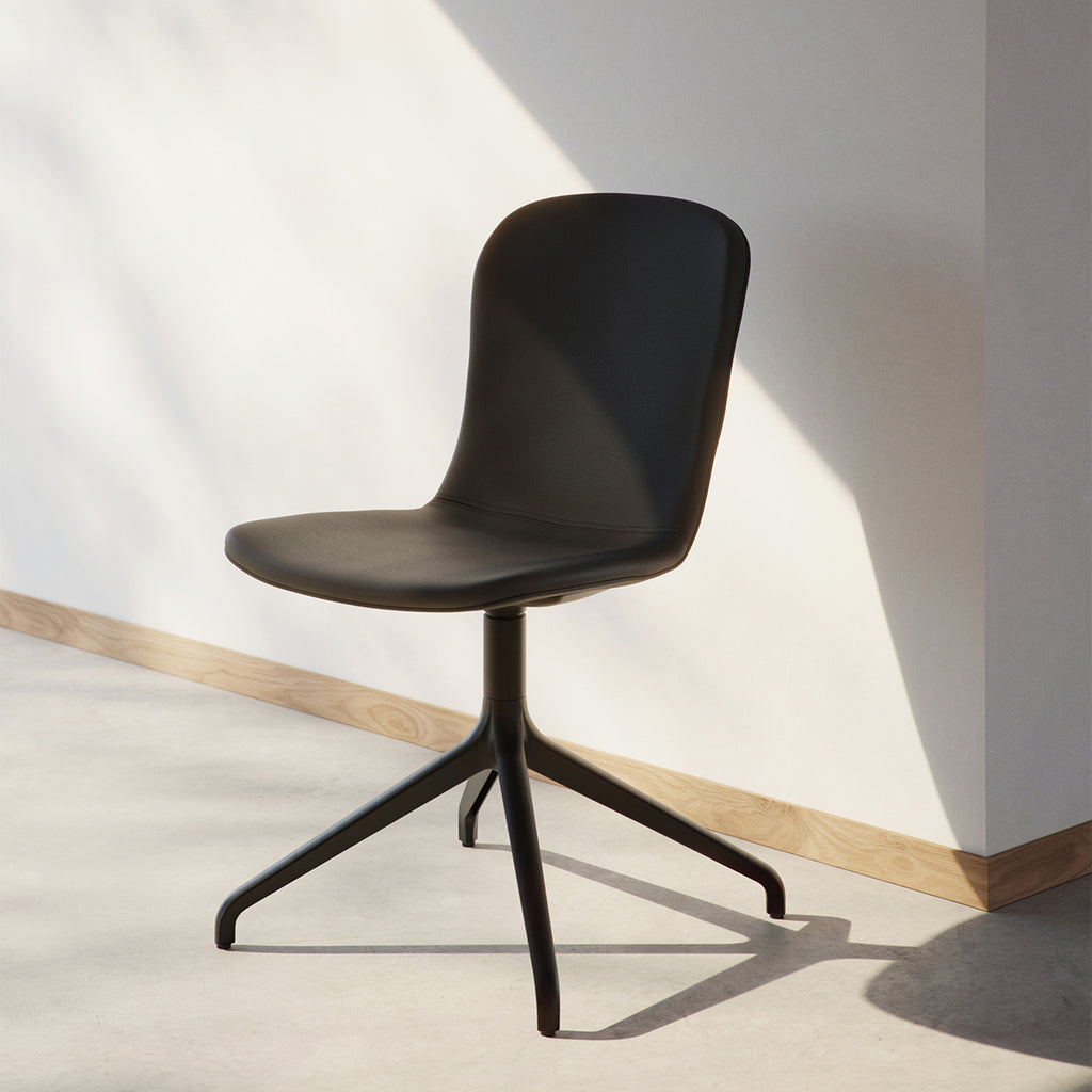 Chair no. One is a dining chair with an uncompromising design made from carefully selected materials with a focus on sustainability and quality. The frame is made from recyclable aluminum, while the seat is made from recycled plastic and upholstered in the highest quality SPOOR leather.