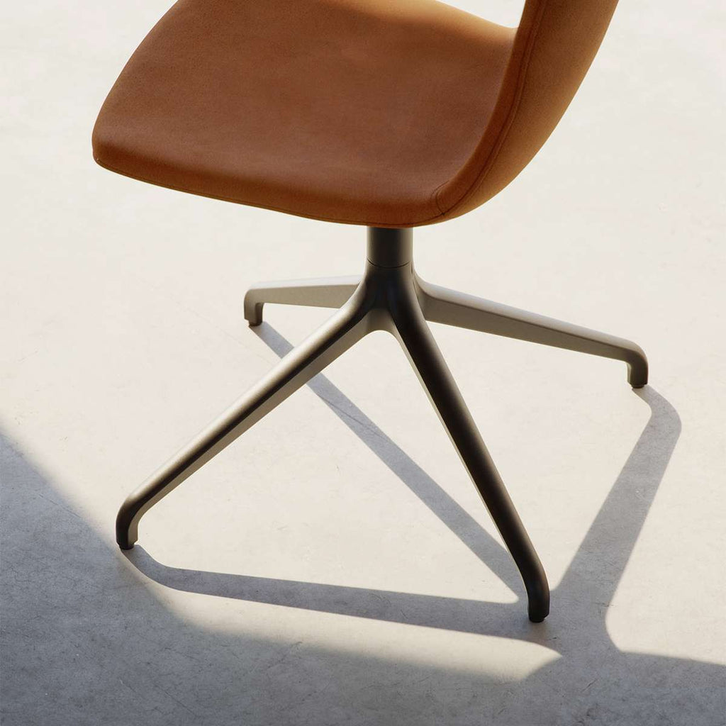 A swivel base allows the chair to rotate 360 degrees around its own axis.