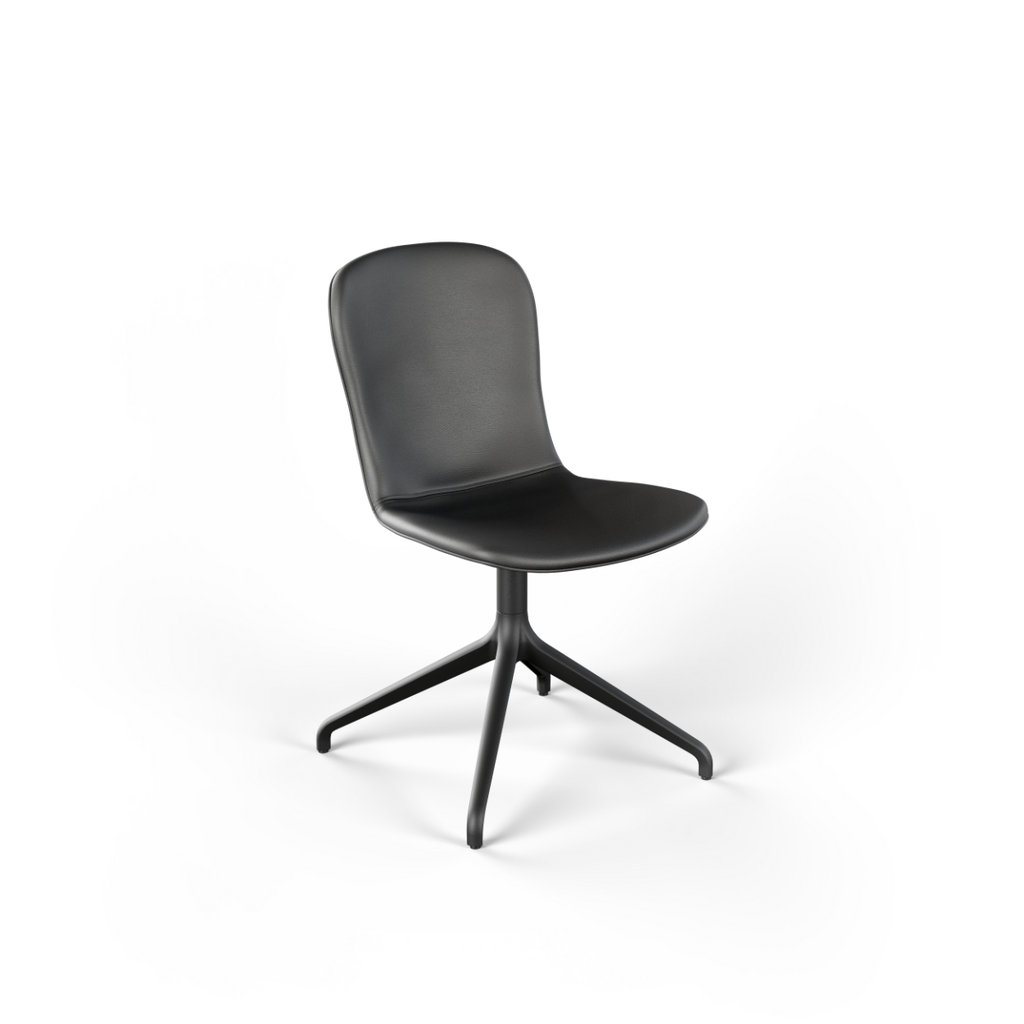 Chair no. One S1 is the clean and simple version of Chair no. One. A dining chair with a coherent design language, where comfort, materials and responsible choices are integrated from the start. The moulded shell in recycled plastic is upholstered with Nordic, traceable leather from SPOOR and provides a comfortable and supportive seating experience for everyday use around the dining table.