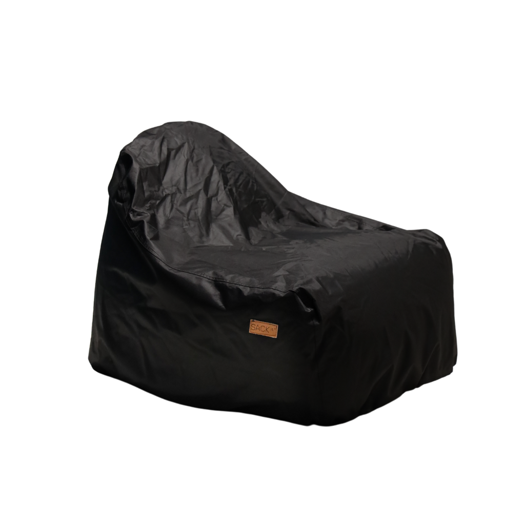 The cover is made of black water repellent material and is custom sewn for the bean bag.