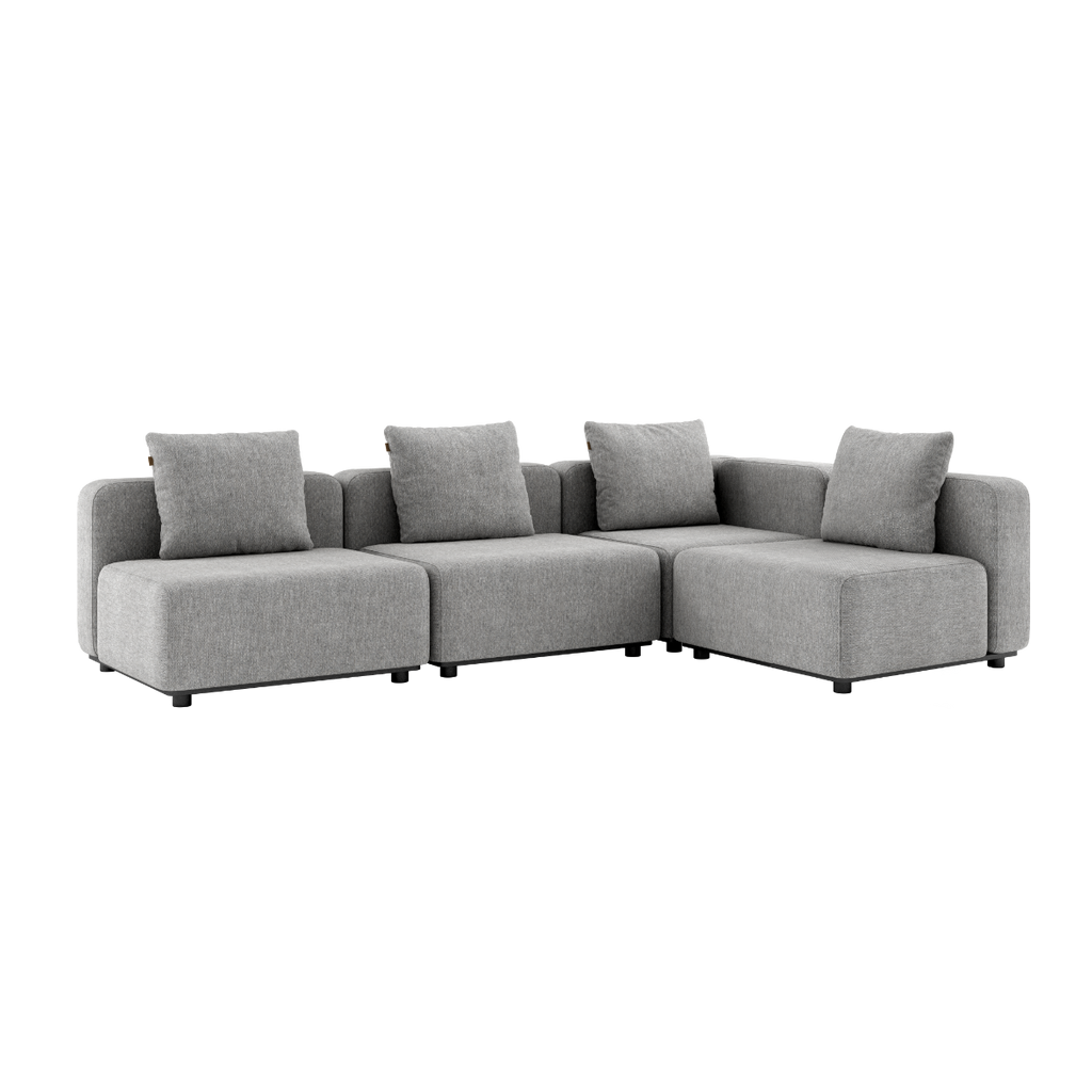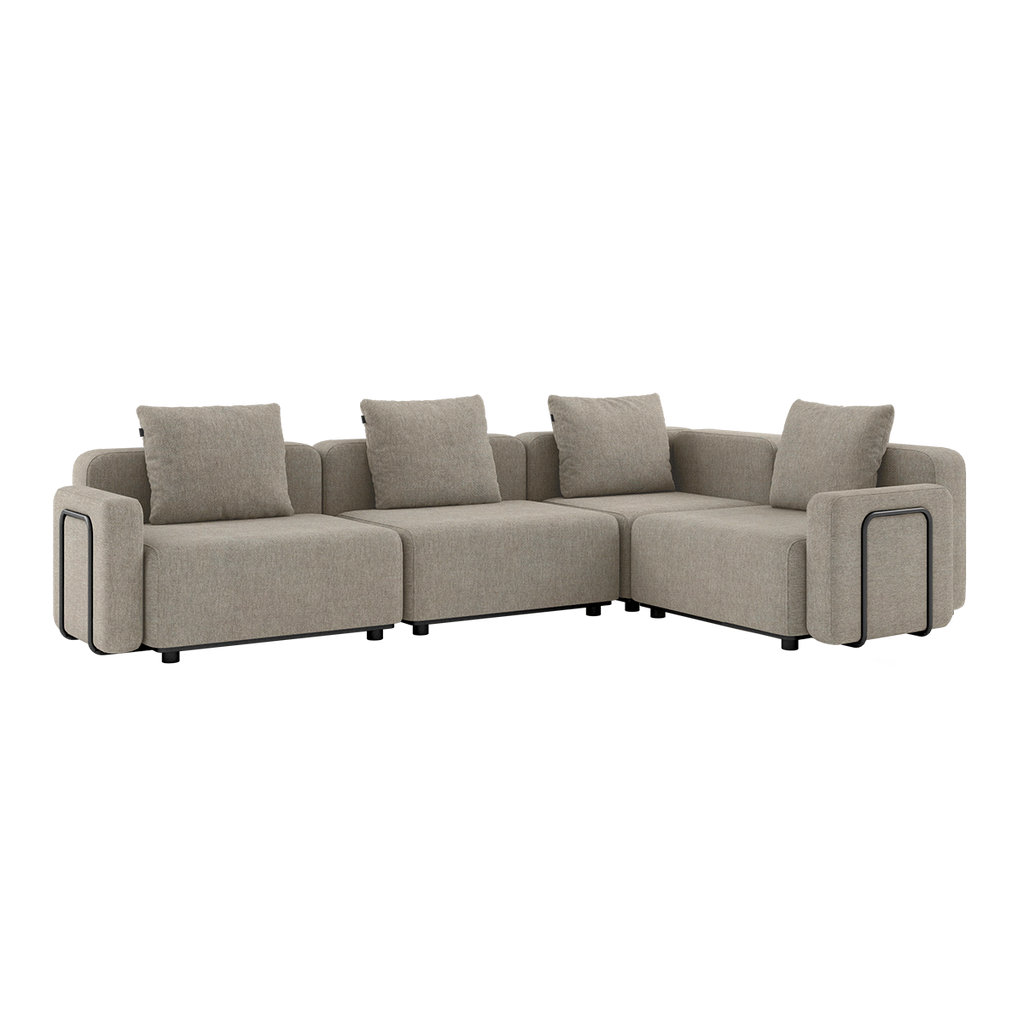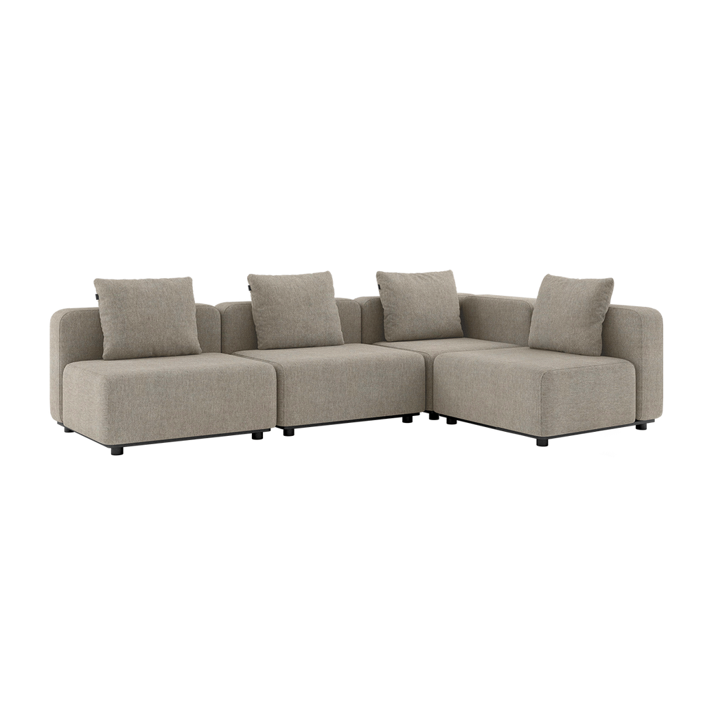 The lightweight modules make it easy to change the layout as needs change, without compromising stability or comfort. The construction is built around a powder-coated aluminium frame and durable materials made to stay outdoors all year round. The textile is water- and dirt-repellent, quick-drying, and UV-resistant, ensuring the sofa retains its shape, function, and colour over time.