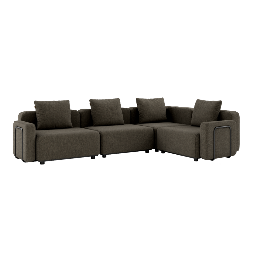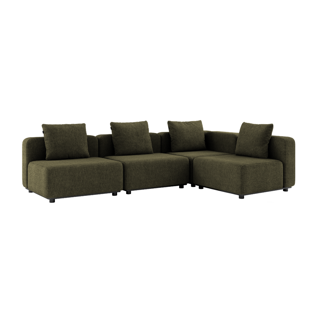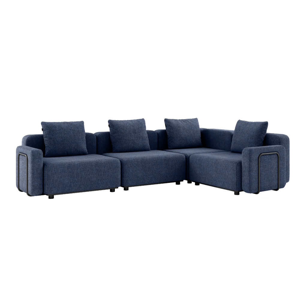 The lightweight modules make it easy to change the layout as needs change, without compromising stability or comfort. The construction is built around a powder-coated aluminium frame and durable materials made to stay outdoors all year round. The textile is water- and dirt-repellent, quick-drying, and UV-resistant, ensuring the sofa retains its shape, function, and colour over time.