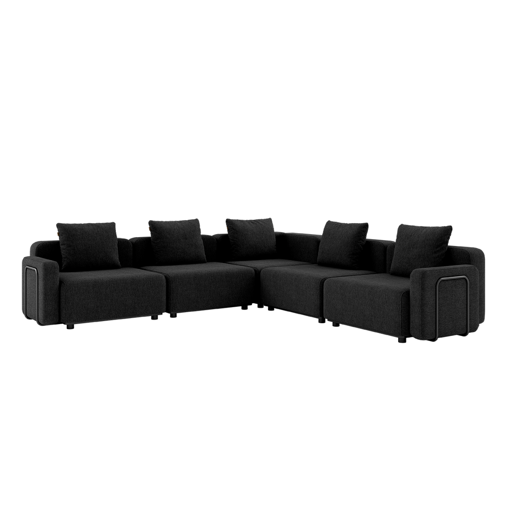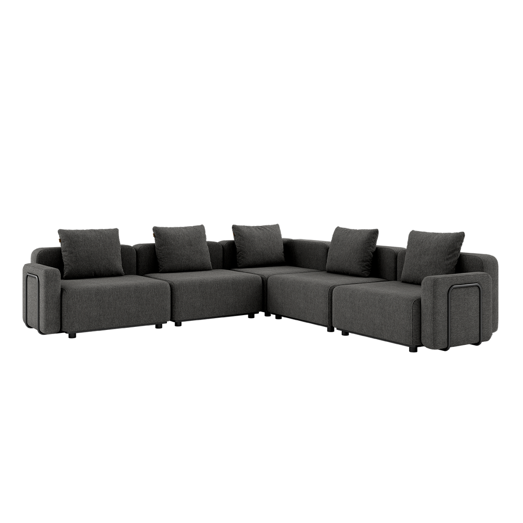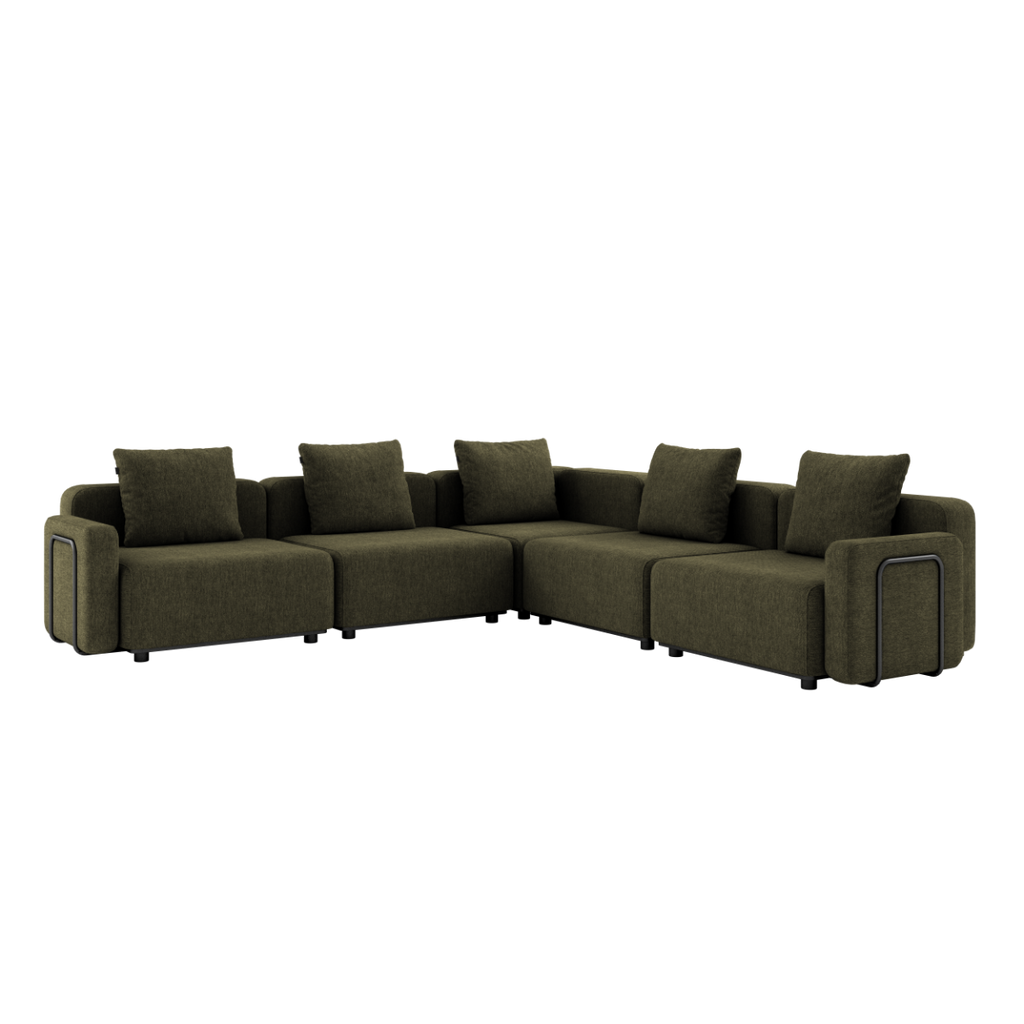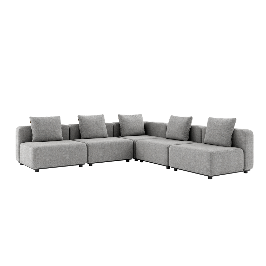 The lightweight modules make it easy to change the layout as needs evolve, without compromising stability or comfort. The construction is built around a powder-coated aluminium frame and durable materials developed for year-round outdoor use. The sofa is available in olefin textiles (Kirra and Cobana) as well as Sunproof Bouclé. The fabrics are water- and dirt-repellent, quick-drying, and UV-resistant, helping the sofa retain its shape, function, and colour over time.