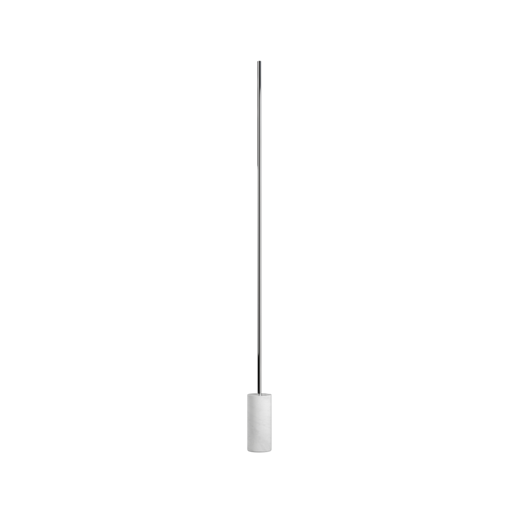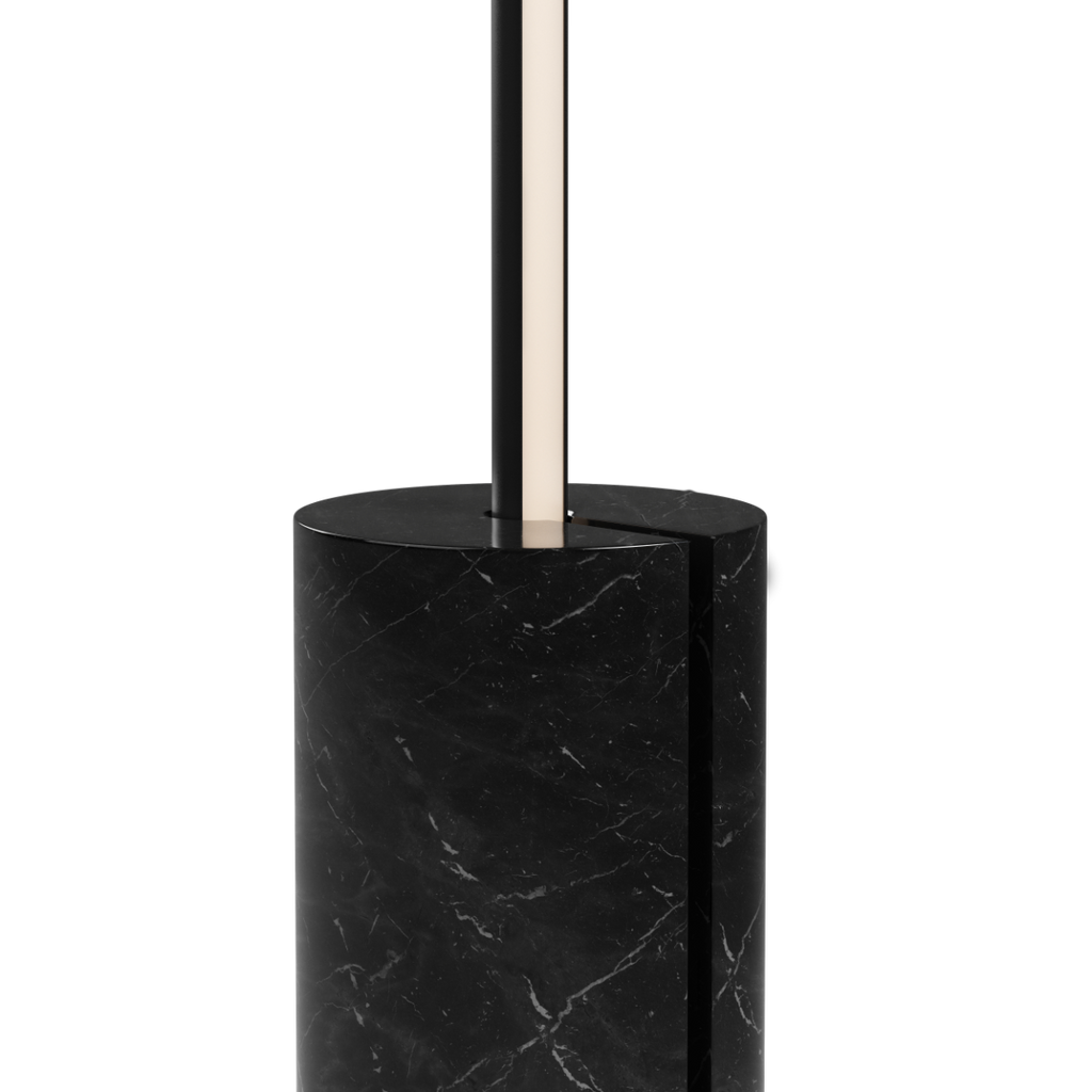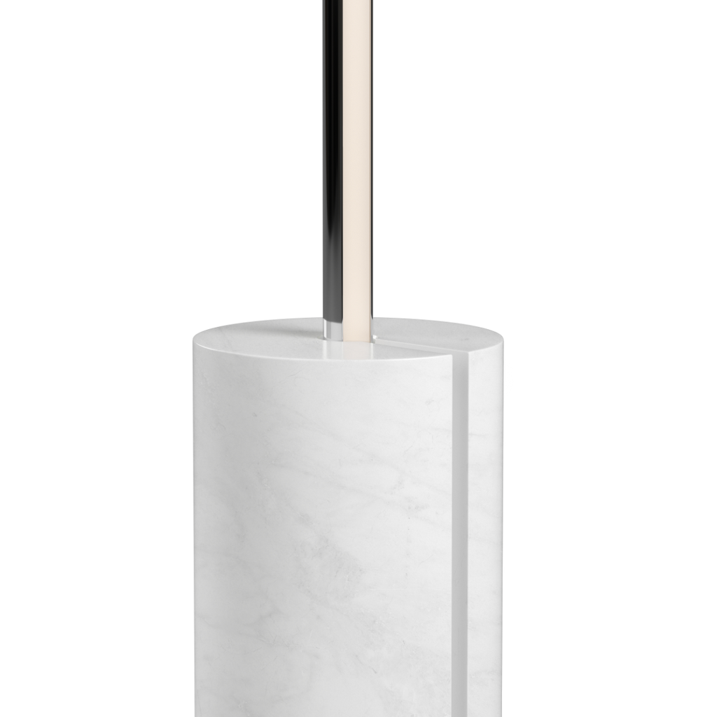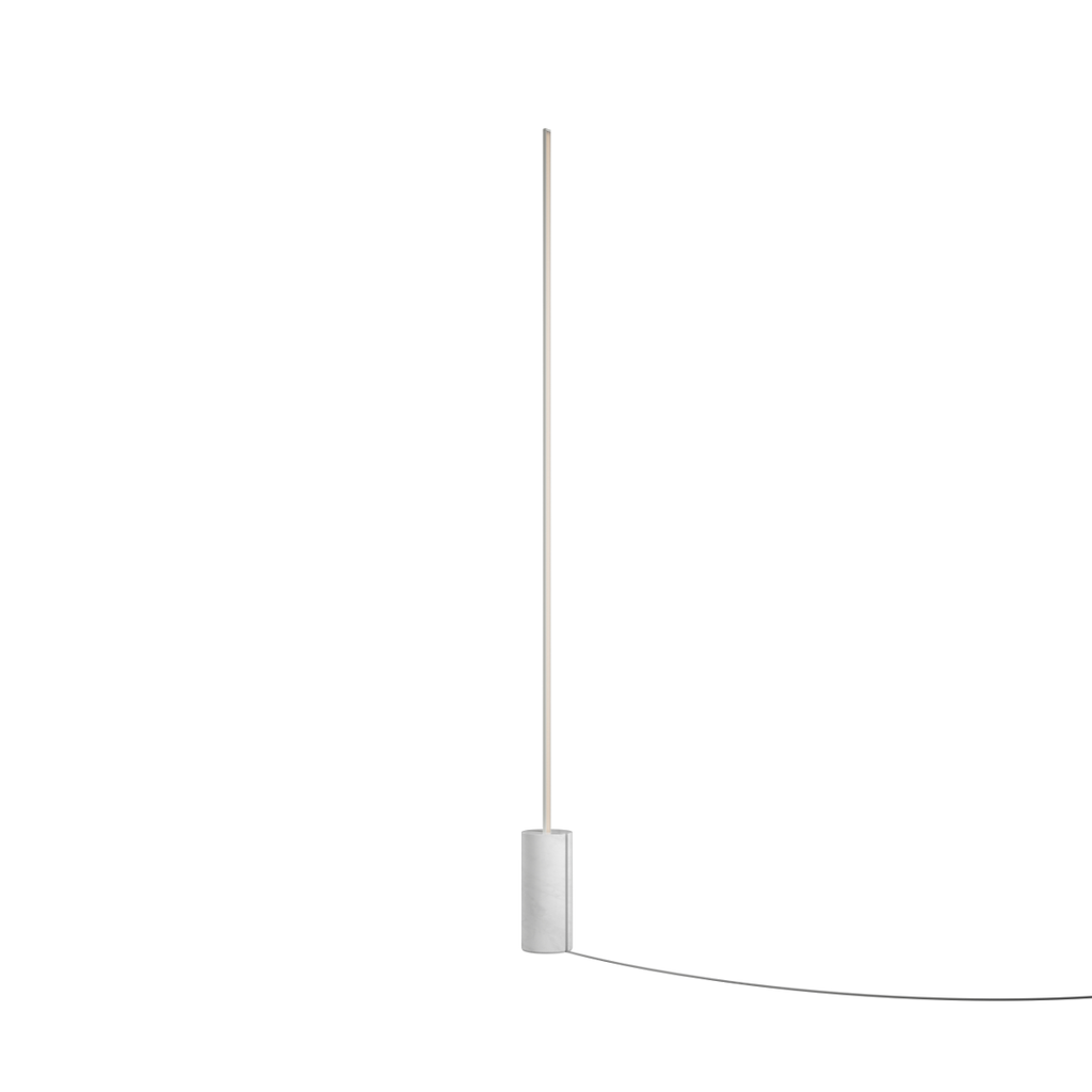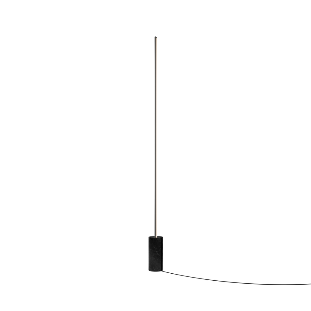 Expo 185 is a floor lamp that almost feels like a line drawn in the room. A slim aluminium profile lifts the vertical light up the wall, while the solid marble base creates balance and calm. It takes up surprisingly little space, yet stands with a reassuring weight.