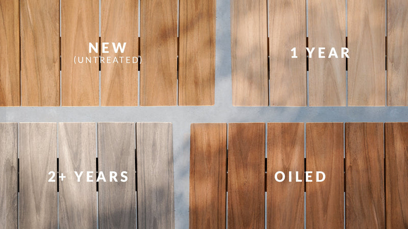 Teak can last for many years without treatment, but will turn gray over time due to rain and sun without treatment. If you want to avoid the gray color, oil it regularly.