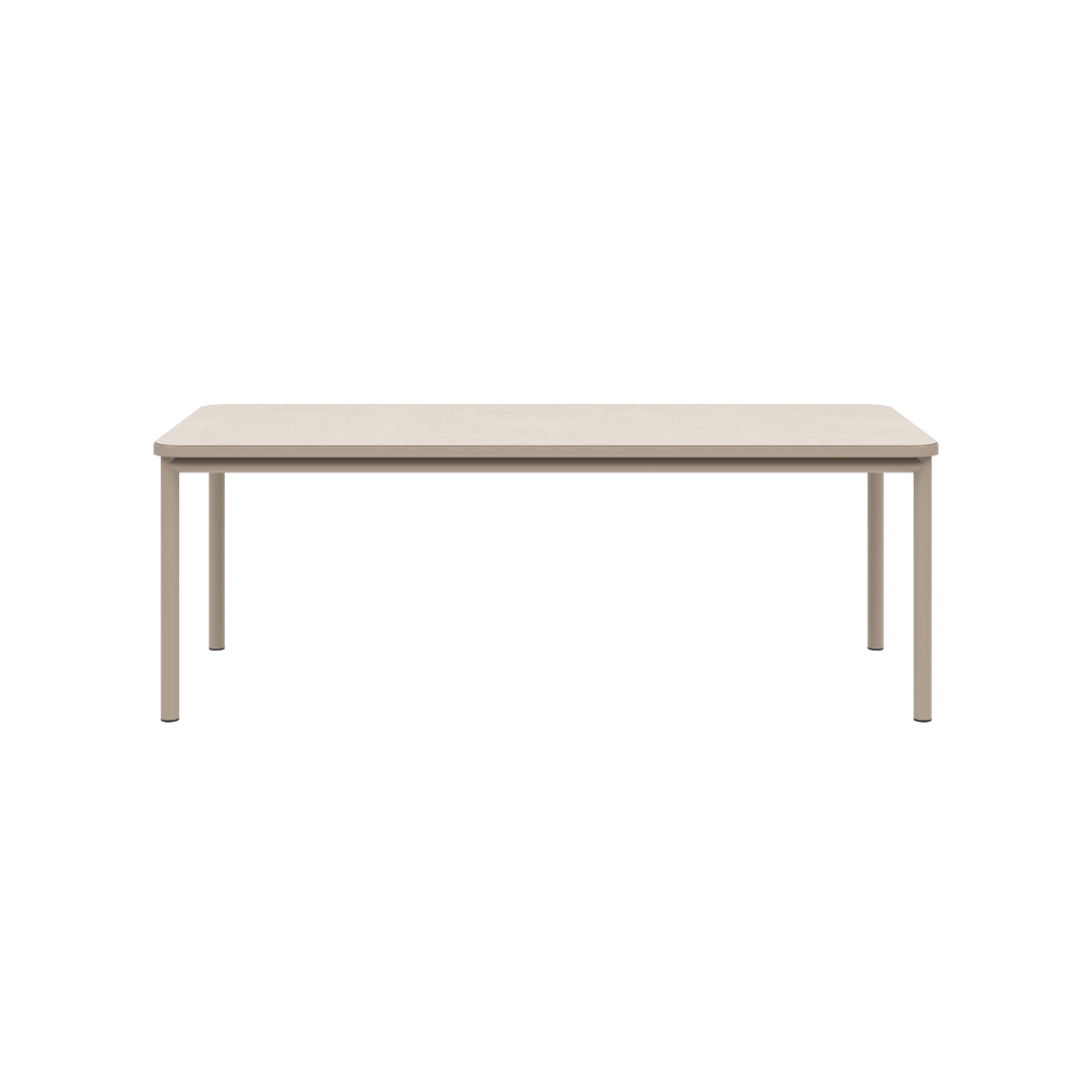 The Kirra Dining Table is an outdoor dining table made of powder-coated aluminum and a ceramic tabletop. The aluminum makes it lightweight and cannot rust, while the ceramic tabletop adds warmth and a natural touch.