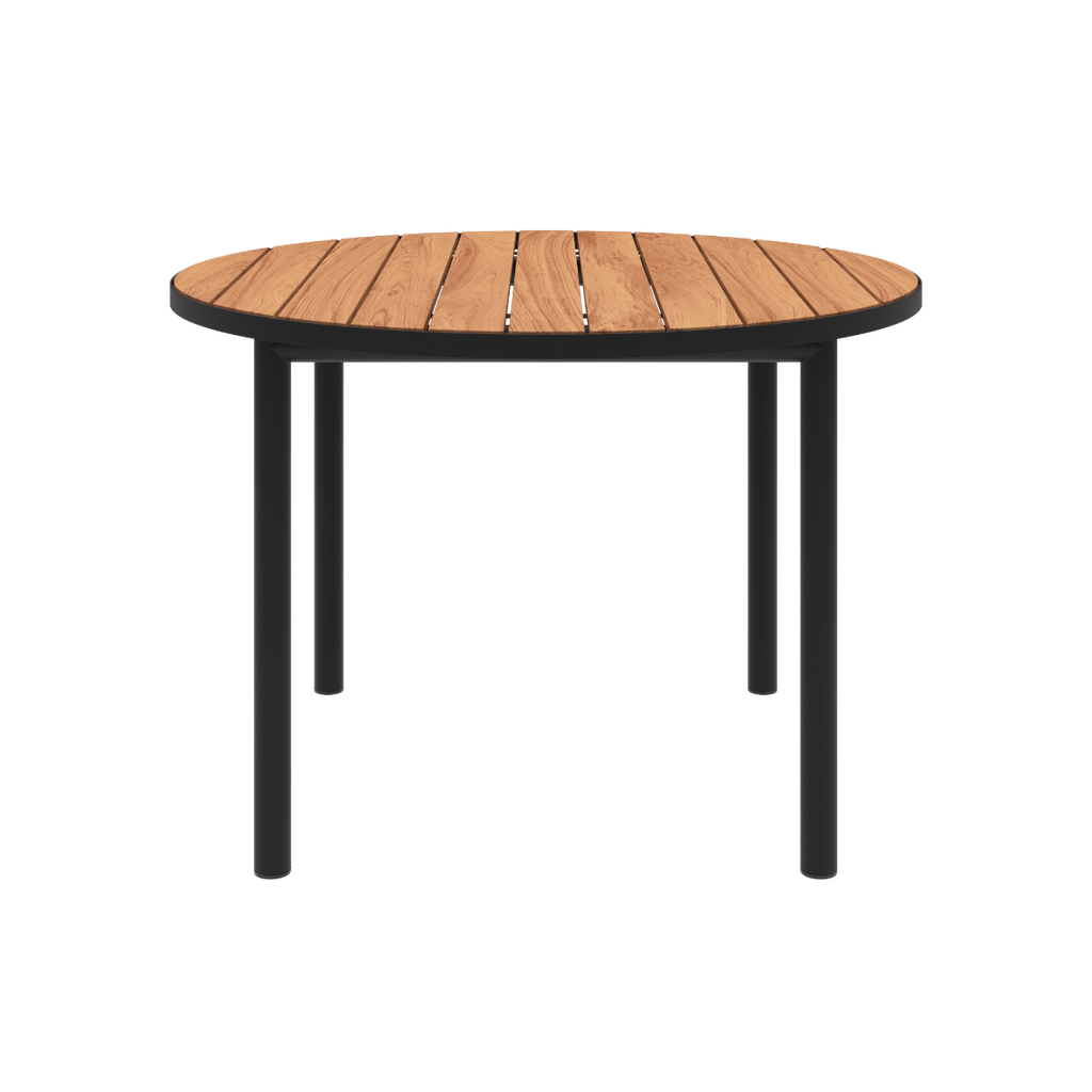 The Kirra Dining Table is an outdoor dining table in powder-coated aluminum and FSC®-certified teak wood (FSC® C190311). The aluminum makes it lightweight and rust-proof, while the teak adds warmth and develops a natural patina over time.
