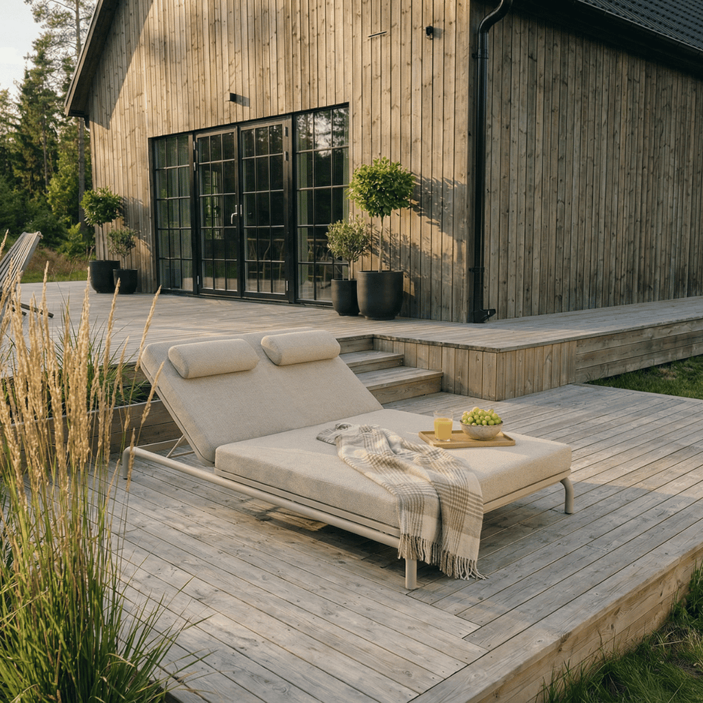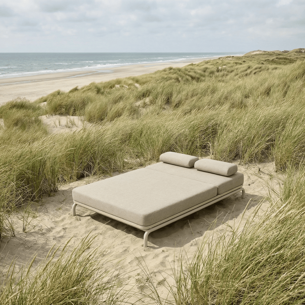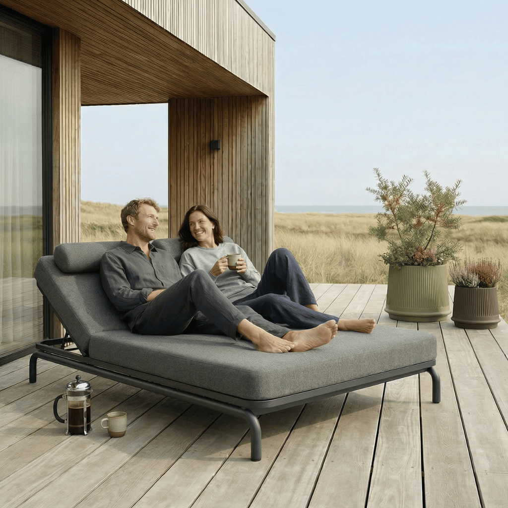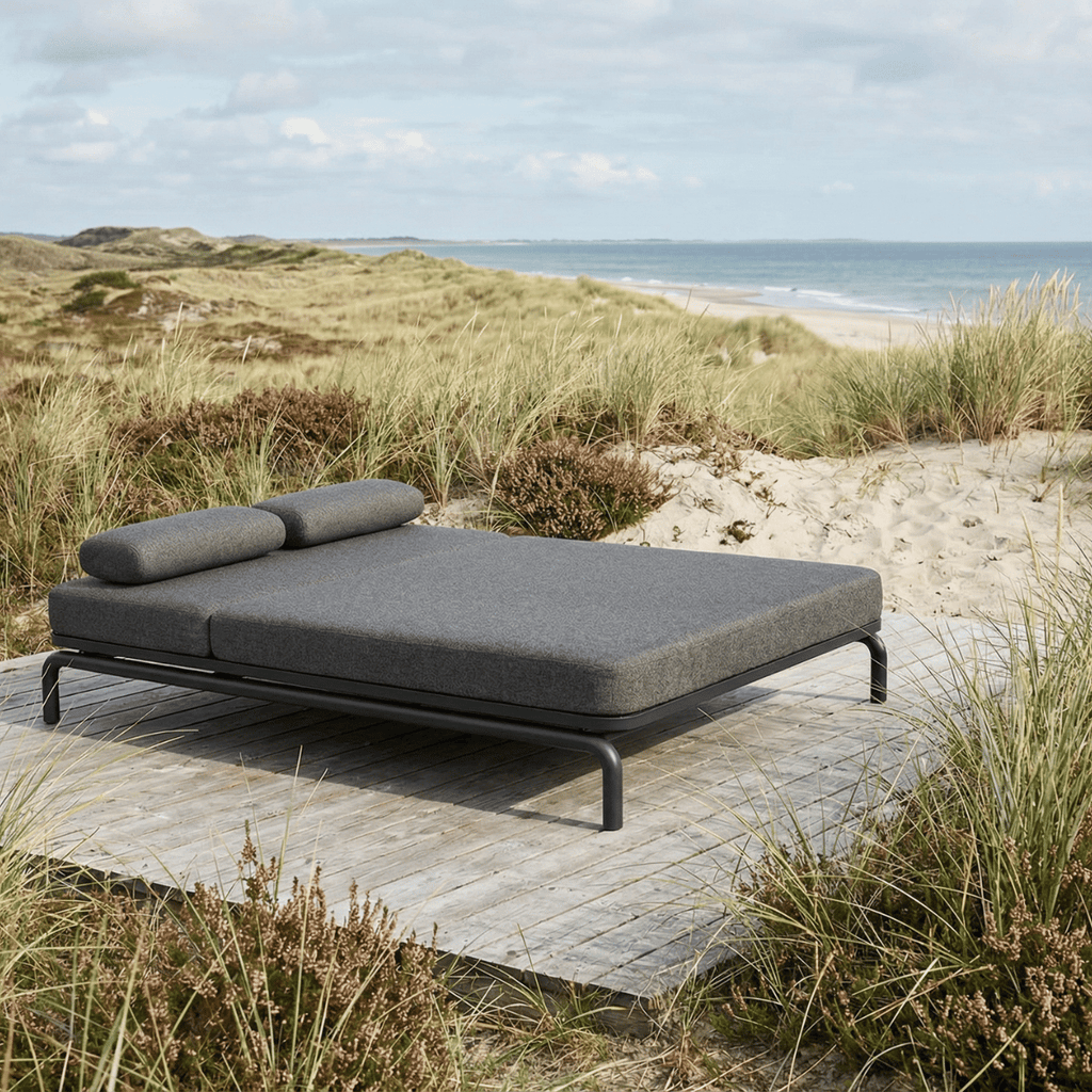 Kirra Double Sunbed is a spacious and elegant double sunbed designed for two people, or for one person who prefers extra room to relax and enjoy life. Created for unhurried moments outdoors, it combines comfort, durability, and aesthetics in a calm, timeless design that feels natural in its surroundings. Designed in Denmark and built with materials made for life outdoors and to perform even as the weather changes.