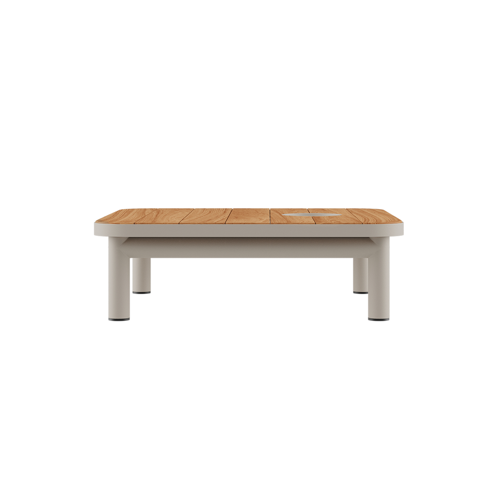 The Kirra Sofa Table is an outdoor coffee table made from powder-coated aluminum with an elegant teak tabletop. As part of the Kirra Lounge series, this coffee table is designed to pair perfectly with the Kirra Lounge Sofa and Chair. With its durable construction and aesthetic appeal, the Kirra Sofa Table will make a beautiful and practical addition to any outdoor oasis.