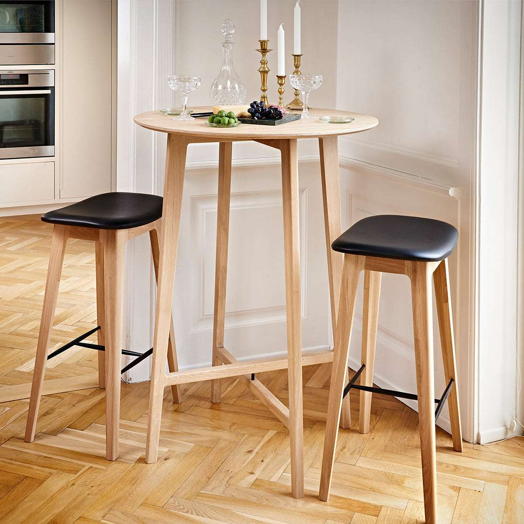 Nordic Bar Stool - Oak - Bar stool with a leather seat and solid oak legs