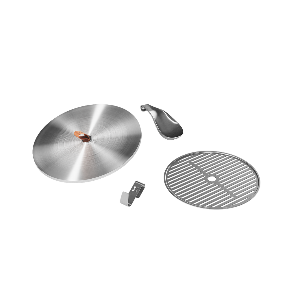 The accessory pack contains a lid, hook, spoon, and grate that all extend the cooling time significantly and makes it easier to handle the contents of the ice- and wine cooler.