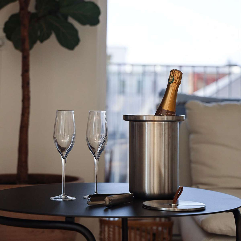 The wine cooler has a two-layer construction, which will keep your wine cool for the whole evening. Drinks on the menu? No problem! The wine cooler has water-collecting drain at the bottom, and an ice tong is included, making it work perfectly as an ice bucket.